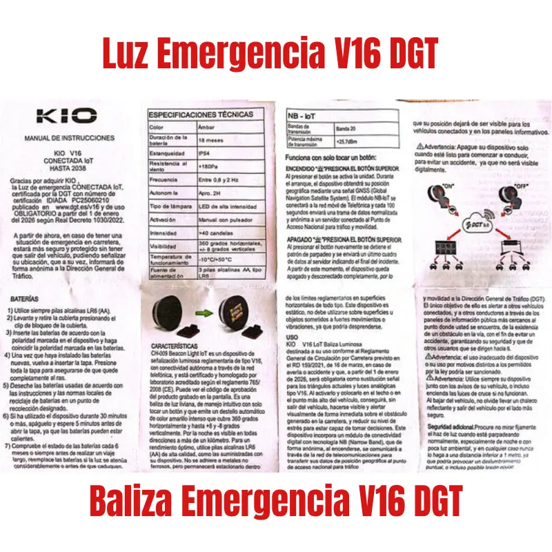 Luz de emergencia homologada por IDIADA y autorizada por la DGT, cumpliendo con todos los requisitos de la normativa V16.
