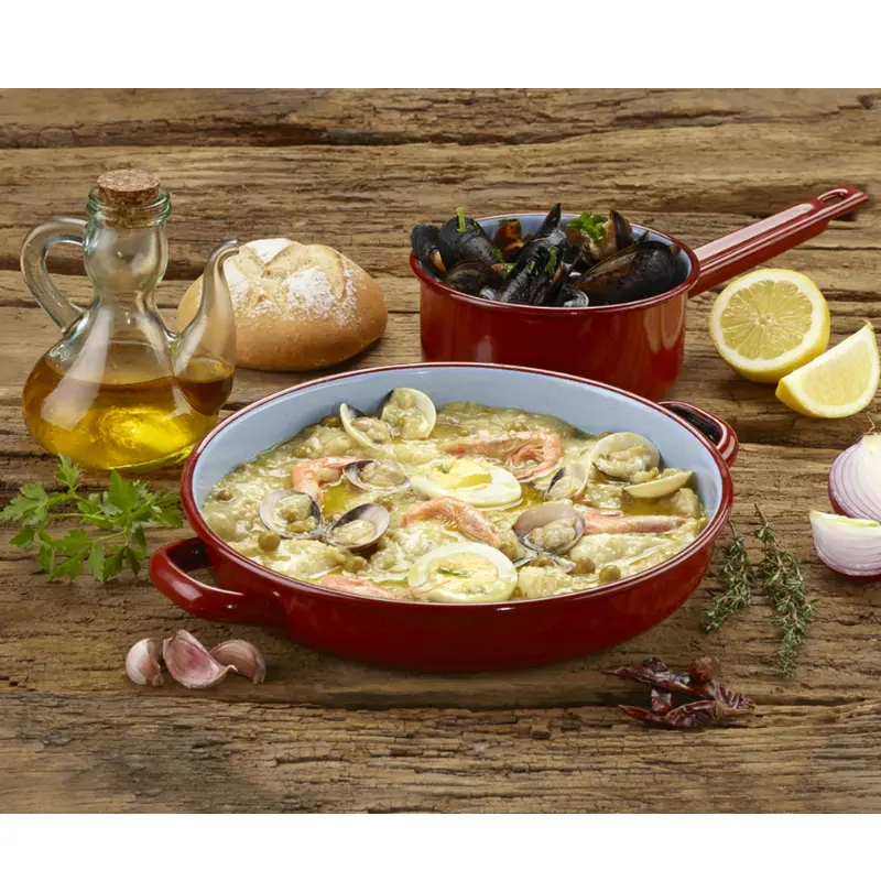 450 ml hasta 29 litros o más, con diámetros que van desde 12cm hasta 40 cm.Ventajas:La cacerola Línea Teja de La Estrella es un utensilio de cocina esmaltado, fabricado en acero de alta calidad con doble capa de vitrificado, lo que le otorga resistencia a la corrosión e higiene.Su clásico color marrón es característico de la línea Teja, y está disponible en una gran variedad de tamaños para diferentes necesidades, desde individuales hasta familiares.