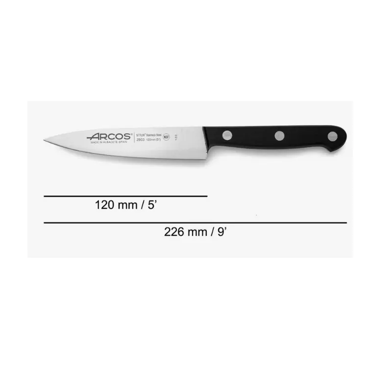 Este Cuchillo de Cocina de la Serie Universal de 120 mm se emplea para los cortes que requieren de precisión con fines domésticos y profesionales. Su fabricado con acero inoxidable NITRUM® le aporta durabilidad, mientras que el mango está concebido para el uso diario.