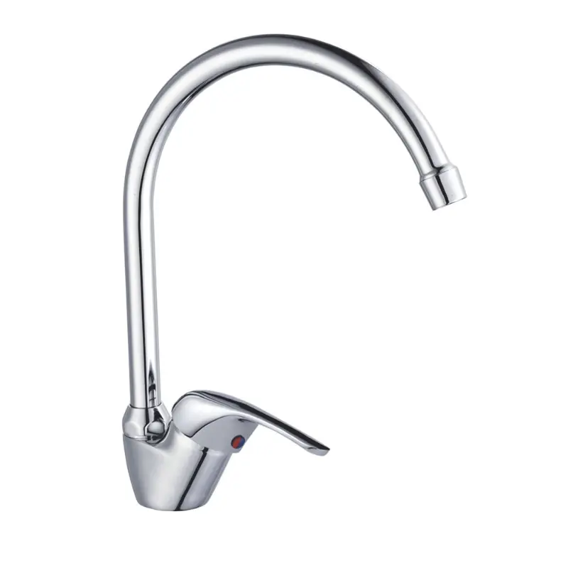 Grifo monomando de cocina (fregadera) fabricado en latón con acabado cromado.