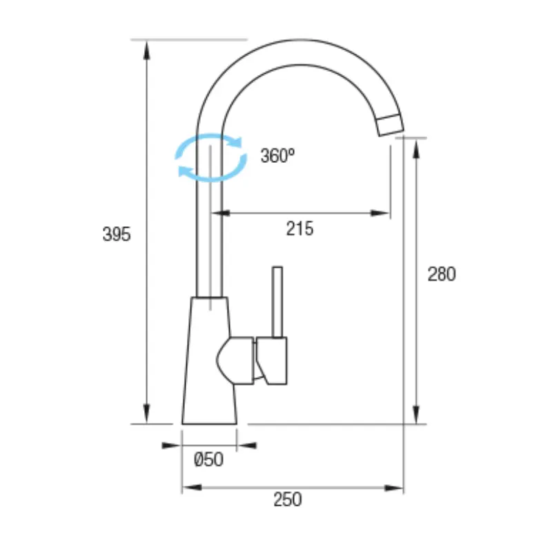 • Caño Giratorio: Dispone de un caño con rotación de 360º. Gracias a ello, facilita el acceso a todas las zonas del fregadero y resulta especialmente ideal para cubetas dobles.